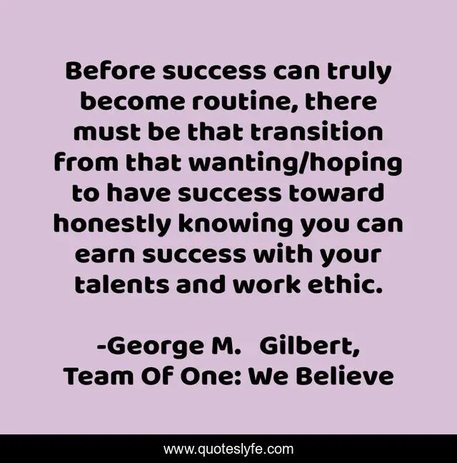 "George M. Gilbert, Team Of One: We Believe Quotes." Quoteslyfe.com, 2025. Fri. 05 Dec. 2025. <https://www.quoteslyfe.com/quote/Before-success-can-truly-become-routine-there-249569>.