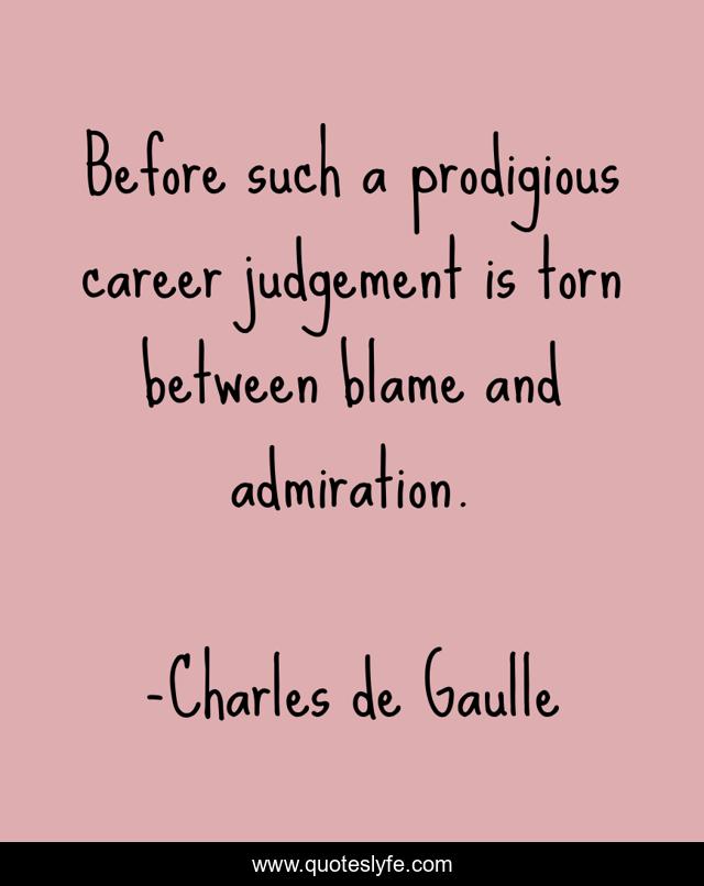 This page presents the quote "Before such a prodigious career judgement is torn between blame and admiration.". Author of this quote is Charles de Gaulle. This quote is about celebrities, fame,.