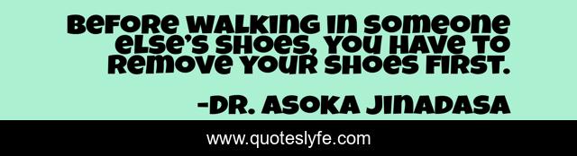 This page presents the quote "Before walking in someone else’s shoes, you have to remove your shoes first.". Author of this quote is Dr. Asoka Jinadasa. .