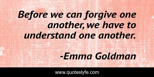 This page presents the quote "Before we can forgive one another, we have to understand one another.". Author of this quote is Emma Goldman. This quote is about forgiveness, anarchy, understanding-others,.