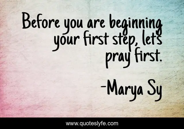 This page presents the quote "Before you are beginning your first step, let's pray first.". Author of this quote is Marya Sy. .