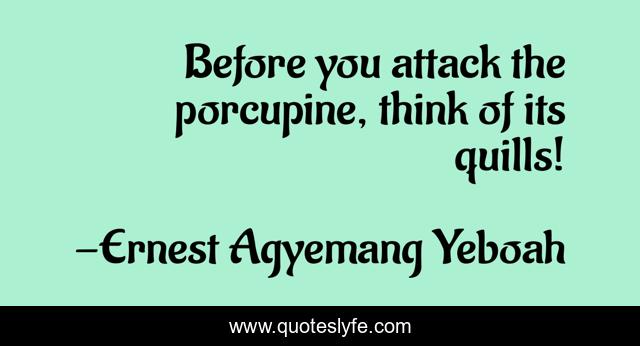 "Ernest Agyemang Yeboah Quotes." Quoteslyfe.com, 2025. Sat. 06 Dec. 2025. <https://www.quoteslyfe.com/quote/Before-you-attack-the-porcupine-think-of-88337>.