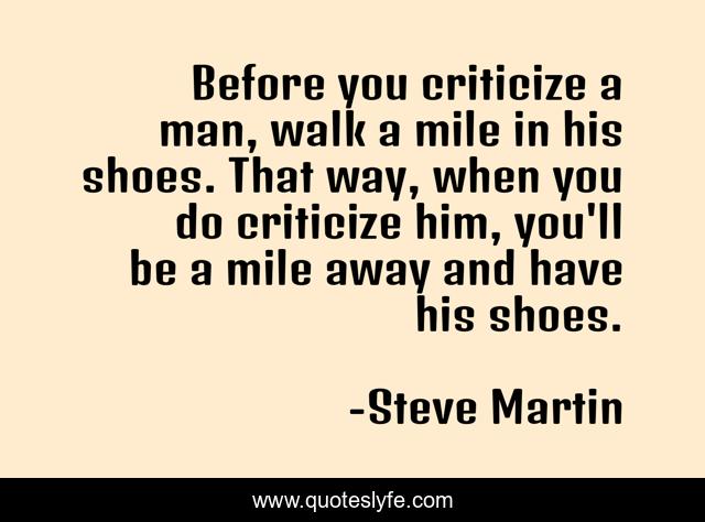 "Steve Martin Quotes." Quoteslyfe.com, 2025. Fri. 05 Dec. 2025. <https://www.quoteslyfe.com/quote/Before-you-criticize-a-man-walk-a-6561>.