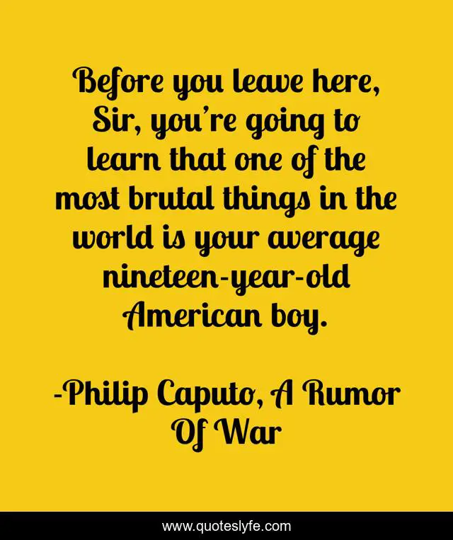 "Philip Caputo, A Rumor Of War Quotes." Quoteslyfe.com, 2025. Sat. 06 Dec. 2025. <https://www.quoteslyfe.com/quote/Before-you-leave-here-Sir-you-re-52293>.