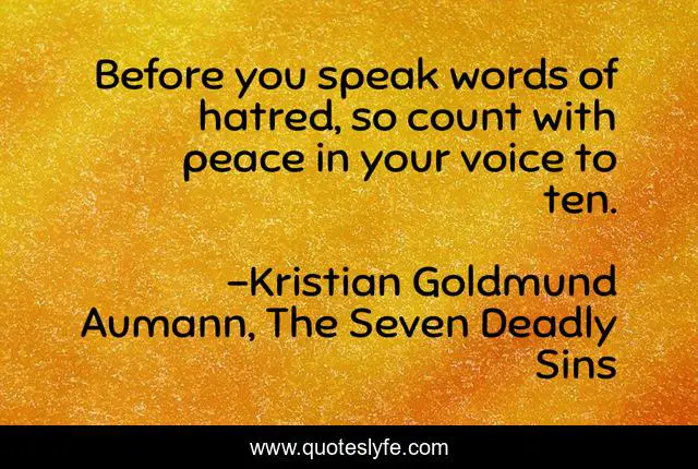 "Kristian Goldmund Aumann, The Seven Deadly Sins Quotes." Quoteslyfe.com, 2025. Fri. 05 Dec. 2025. <https://www.quoteslyfe.com/quote/Before-you-speak-words-of-hatred-so-221420>.