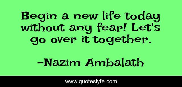 This page presents the quote "Begin a new life today without any fear! Let's go over it together.". Author of this quote is Nazim Ambalath. This quote is about fear-of-failure, lifestyle-change, new-age,.