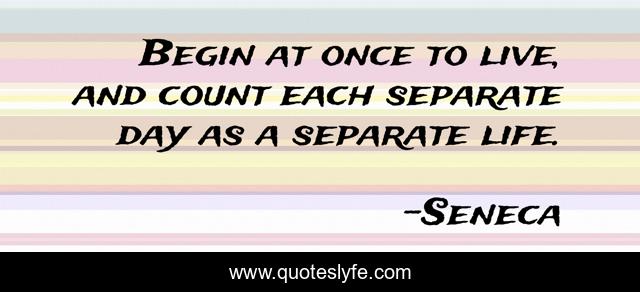 This page presents the quote "Begin at once to live, and count each separate day as a separate life.". Author of this quote is Seneca. This quote is about count, live, day,.