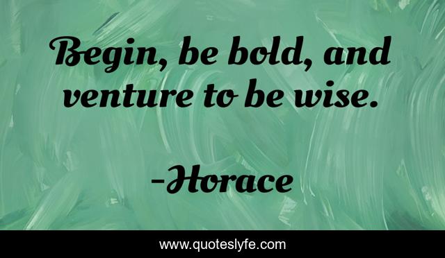 This page presents the quote "Begin, be bold, and venture to be wise.". Author of this quote is Horace. This quote is about begin, boldness, bold, beginnings, wisdom, venture, act, action, wise,.