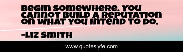 This page presents the quote "Begin somewhere. You cannot build a reputation on what you intend to do.". Author of this quote is Liz Smith. This quote is about career, carpe-diem, reputation, goals, dreams,.