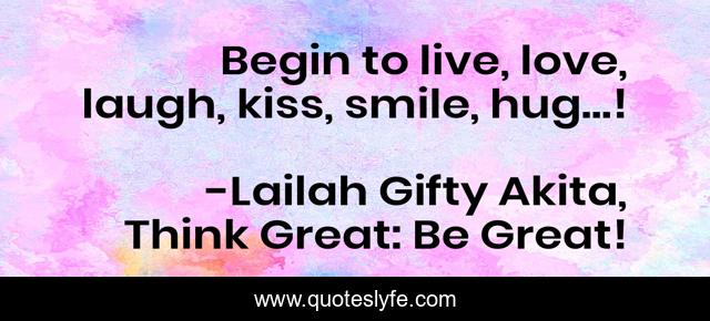 "Lailah Gifty Akita, Think Great: Be Great! Quotes." Quoteslyfe.com, 2025. Mon. 08 Dec. 2025. <https://www.quoteslyfe.com/quote/Begin-to-live-love-laugh-kiss-smile-92733>.