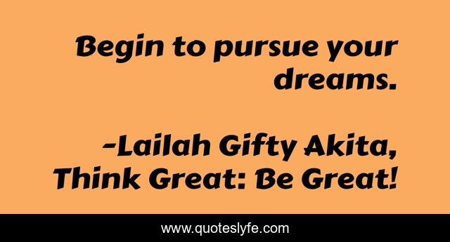 "Lailah Gifty Akita, Think Great: Be Great! Quotes." Quoteslyfe.com, 2025. Tue. 09 Dec. 2025. <https://www.quoteslyfe.com/quote/Begin-to-pursue-your-dreams-92738>.