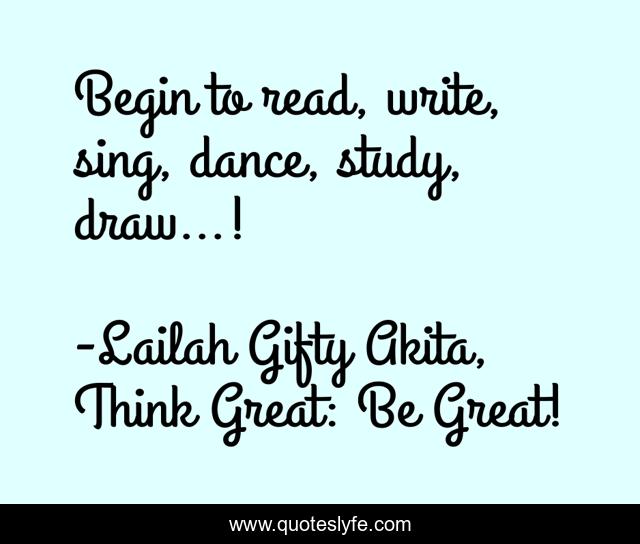 "Lailah Gifty Akita, Think Great: Be Great! Quotes." Quoteslyfe.com, 2025. Fri. 05 Dec. 2025. <https://www.quoteslyfe.com/quote/Begin-to-read-write-sing-dance-study-91730>.