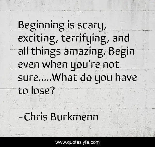 "Chris Burkmenn Quotes." Quoteslyfe.com, 2025. Fri. 05 Dec. 2025. <https://www.quoteslyfe.com/quote/Beginning-is-scary-exciting-terrifying-and-all-93092>.