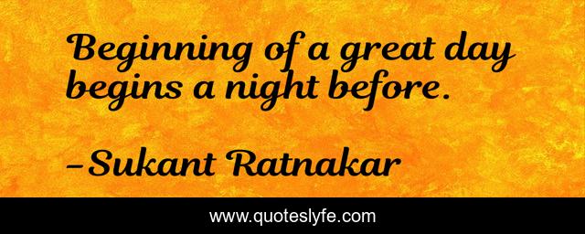 This page presents the quote "Beginning of a great day begins a night before.". Author of this quote is Sukant Ratnakar. This quote is about discipline, punctuality, planning,.