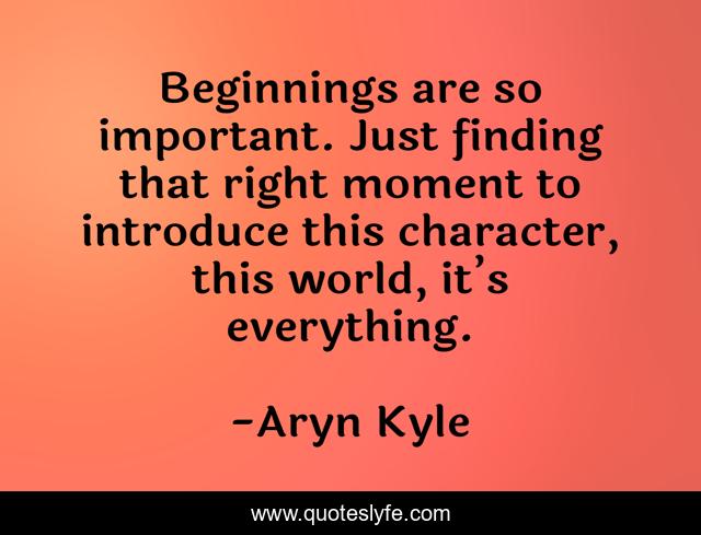 This page presents the quote "Beginnings are so important. Just finding that right moment to introduce this character, this world, it’s everything.". Author of this quote is Aryn Kyle. .