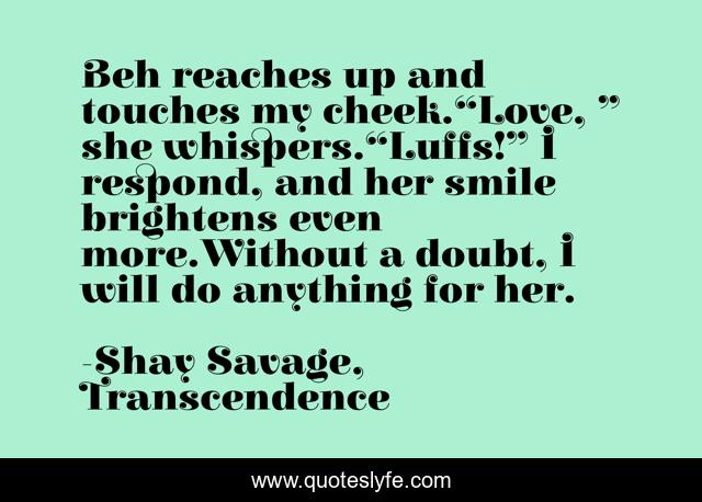 "Shay Savage, Transcendence Quotes." Quoteslyfe.com, 2025. Fri. 05 Dec. 2025. <https://www.quoteslyfe.com/quote/Beh-reaches-up-and-touches-my-cheek-17996>.