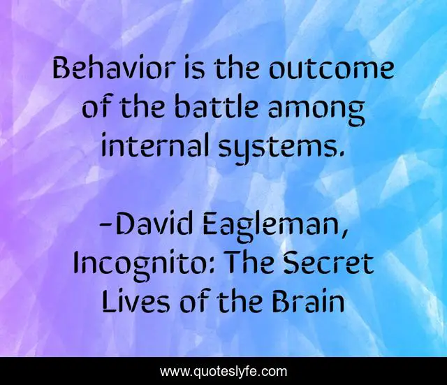 This page presents the quote "Behavior is the outcome of the battle among internal systems.". Author of this quote is David Eagleman, Incognito: The Secret Lives of the Brain. This quote is about battle, behavior,.