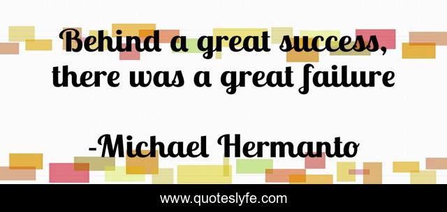 This page presents the quote "Behind a great success, there was a great failure". Author of this quote is Michael Hermanto. This quote is about faith, success, failure, inspirational, enthusiasm, hope,.