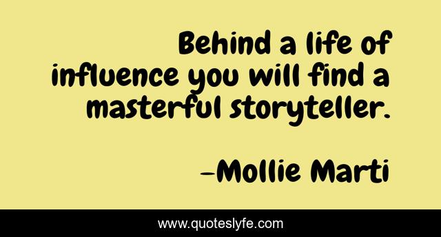 This page presents the quote "Behind a life of influence you will find a masterful storyteller.". Author of this quote is Mollie Marti. This quote is about education, reflection, success,.