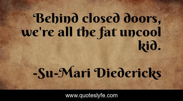 This page presents the quote "Behind closed doors, we're all the fat uncool kid.". Author of this quote is Su-Mari Diedericks. This quote is about insecurity, truth-of-life, unwanted, unpopular,.