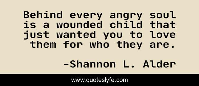 "Shannon L. Alder Quotes." Quoteslyfe.com, 2025. Fri. 05 Dec. 2025. <https://www.quoteslyfe.com/quote/Behind-every-angry-soul-is-a-wounded-63412>.