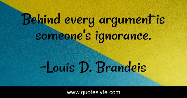 This page presents the quote "Behind every argument is someone's ignorance.". Author of this quote is Louis D. Brandeis. This quote is about behind, ignorance, argument,.
