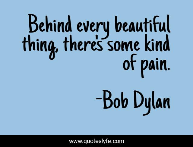 This page presents the quote "Behind every beautiful thing, there's some kind of pain.". Author of this quote is Bob Dylan. This quote is about beautiful, kind, pain, of, thing, behind,.