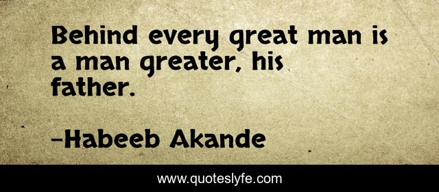 This page presents the quote "Behind every great man is a man greater, his father.". Author of this quote is Habeeb Akande. This quote is about dad, confidence, motivational, inspirational, positive, men, father, optimistic, fatherhood,.