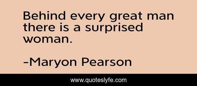This page presents the quote "Behind every great man there is a surprised woman.". Author of this quote is Maryon Pearson. .