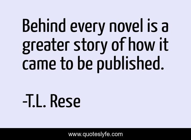 This page presents the quote "Behind every novel is a greater story of how it came to be published.". Author of this quote is T.L. Rese. This quote is about writing-life, publishing, writing,.