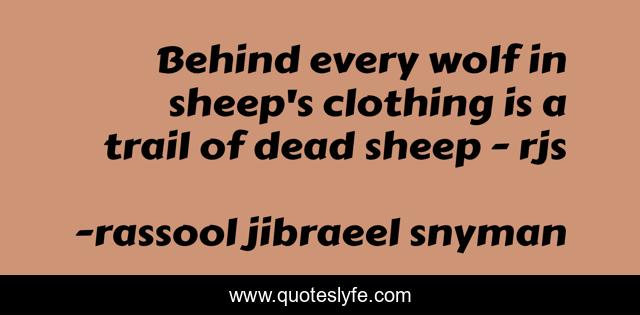 "rassool jibraeel snyman Quotes." Quoteslyfe.com, 2025. Sat. 06 Dec. 2025. <https://www.quoteslyfe.com/quote/Behind-every-wolf-in-sheep-s-clothing-214033>.