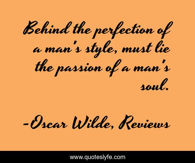 This page presents the quote "Behind the perfection of a man's style, must lie the passion of a man's soul.". Author of this quote is Oscar Wilde, Reviews. This quote is about style, walter-pater, soul, writing, passion, prose,.