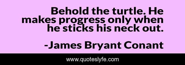This page presents the quote "Behold the turtle. He makes progress only when he sticks his neck out.". Author of this quote is James Bryant Conant. .
