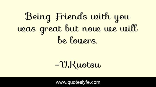 This page presents the quote "Being Friends with you was great but now we will be lovers.". Author of this quote is V.Kuotsu. This quote is about great, friends, lover,.