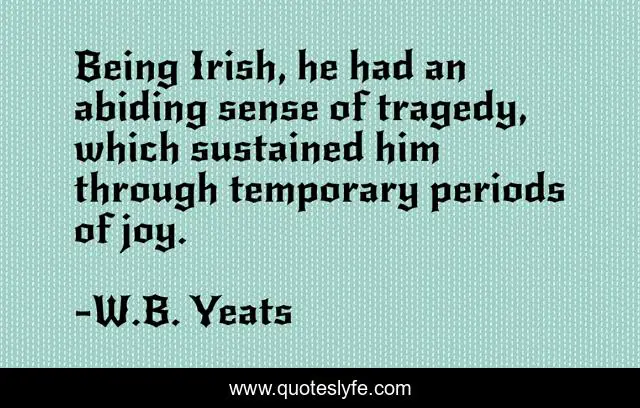 This page presents the quote "Being Irish, he had an abiding sense of tragedy, which sustained him through temporary periods of joy.". Author of this quote is W.B. Yeats. This quote is about irish-writer, irish, joy, tragedy, william-butler-yeats,.