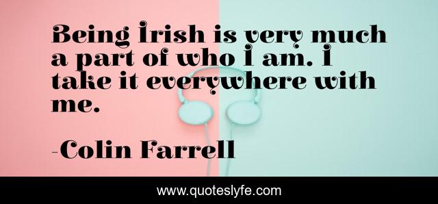 This page presents the quote "Being Irish is very much a part of who I am. I take it everywhere with me.". Author of this quote is Colin Farrell. This quote is about me, irish,.
