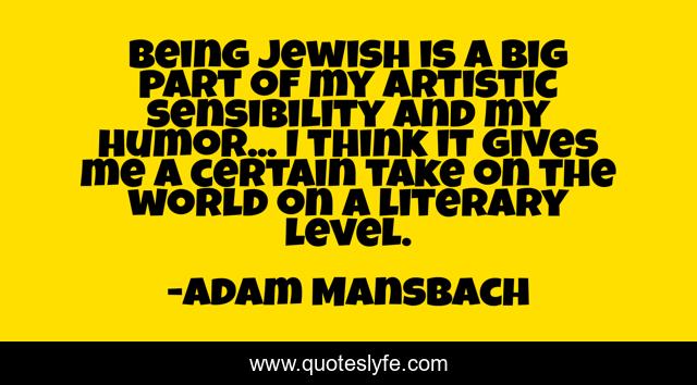 This page presents the quote "Being Jewish is a big part of my artistic sensibility and my humor... I think it gives me a certain take on the world on a literary level.". Author of this quote is Adam Mansbach. This quote is about me, world, think,.