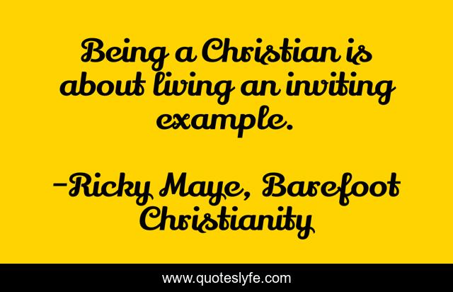 "Ricky Maye, Barefoot Christianity Quotes." Quoteslyfe.com, 2025. Mon. 08 Dec. 2025. <https://www.quoteslyfe.com/quote/Being-a-Christian-is-about-living-an-90925>.