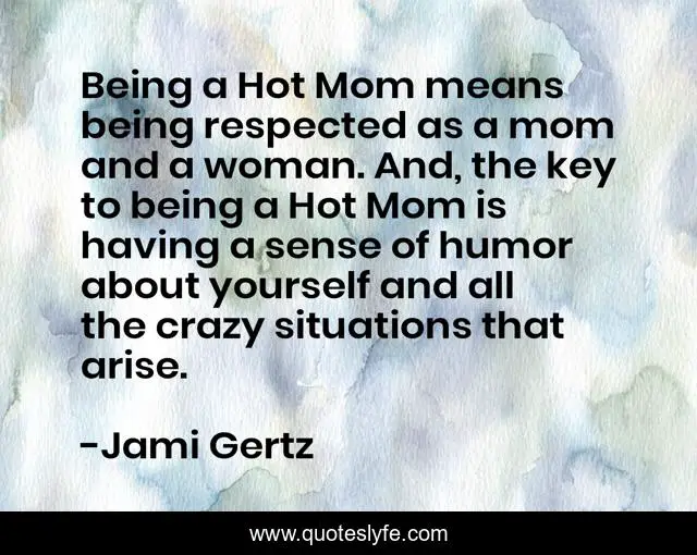 This page presents the quote "Being a Hot Mom means being respected as a mom and a woman. And, the key to being a Hot Mom is having a sense of humor about yourself and all the crazy situations that arise.". Author of this quote is Jami Gertz. This quote is about woman, mom, yourself,.