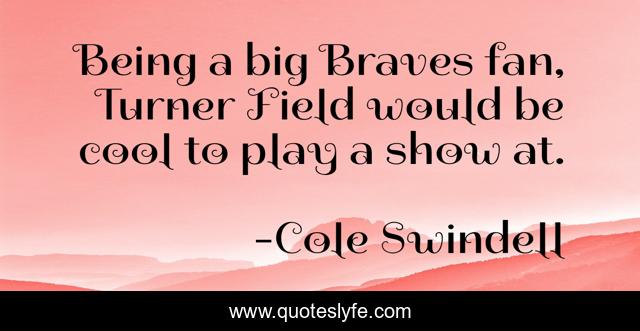 This page presents the quote "Being a big Braves fan, Turner Field would be cool to play a show at.". Author of this quote is Cole Swindell. This quote is about big, play, show,.