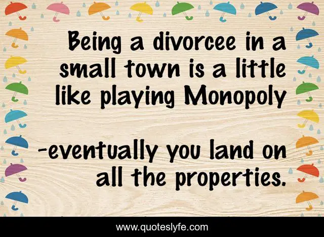 This page presents the quote "Being a divorcee in a small town is a little like playing Monopoly". Author of this quote is eventually you land on all the properties.. .