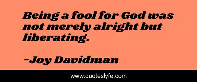 This page presents the quote "Being a fool for God was not merely alright but liberating.". Author of this quote is Joy Davidman. This quote is about peace-of-mind, candor, integrity, humility,.