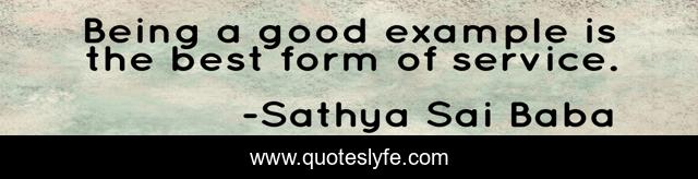 This page presents the quote "Being a good example is the best form of service.". Author of this quote is Sathya Sai Baba. .
