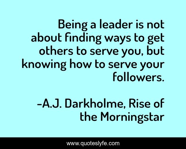 This page presents the quote "Being a leader is not about finding ways to get others to serve you, but knowing how to serve your followers.". Author of this quote is A.J. Darkholme, Rise of the Morningstar. This quote is about serving, group, people, compassion, leading, helping, servant, leadership, followers,.