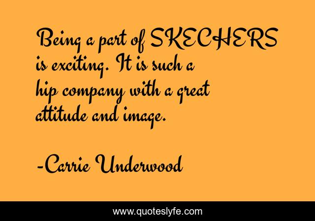 This page presents the quote "Being a part of SKECHERS is exciting. It is such a hip company with a great attitude and image.". Author of this quote is Carrie Underwood. This quote is about being, great, company,.