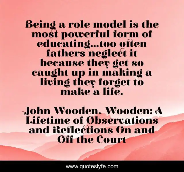 This page presents the quote "Being a role model is the most powerful form of educating...too often fathers neglect it because they get so caught up in making a living they forget to make a life.". Author of this quote is John Wooden, Wooden: A Lifetime of Observations and Reflections On and Off the Court. This quote is about fathers, education, role-models, inspiration,.