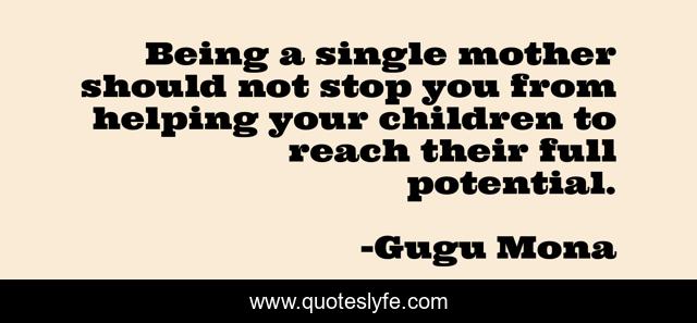 This page presents the quote "Being a single mother should not stop you from helping your children to reach their full potential.". Author of this quote is Gugu Mona. This quote is about helping, full-potential, reach, children, single-mother,.