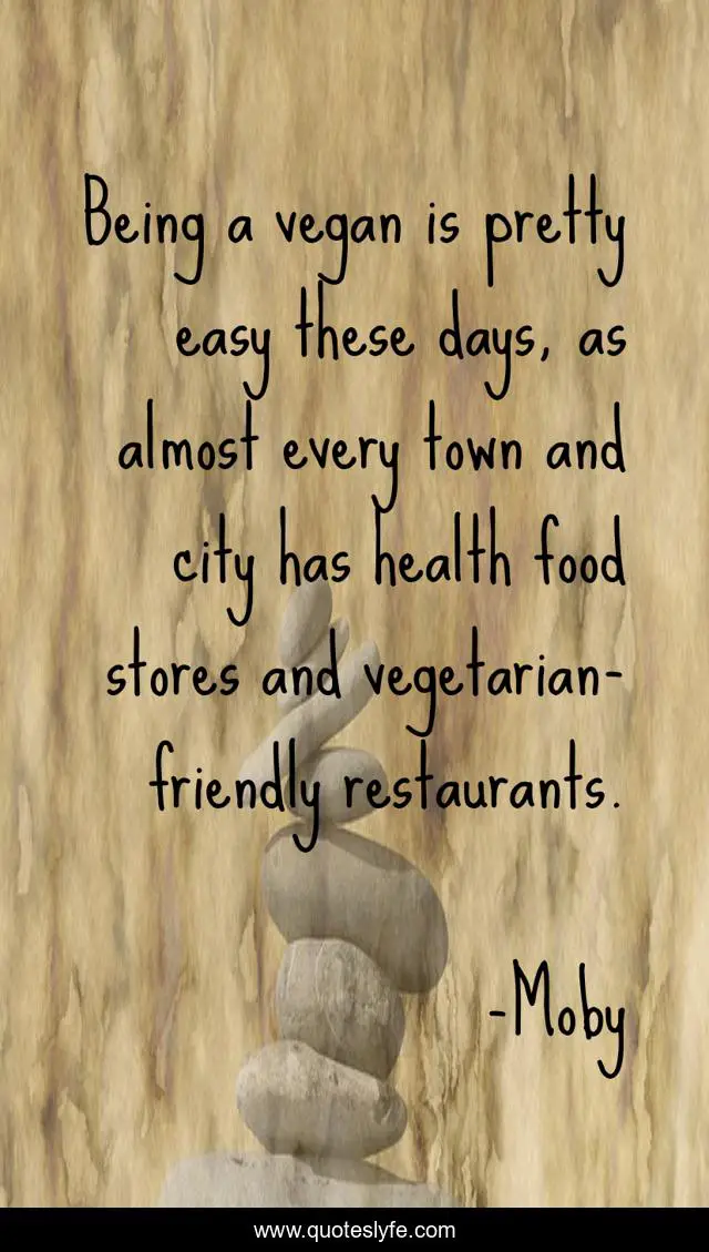 This page presents the quote "Being a vegan is pretty easy these days, as almost every town and city has health food stores and vegetarian-friendly restaurants.". Author of this quote is Moby. This quote is about city, health, easy,.