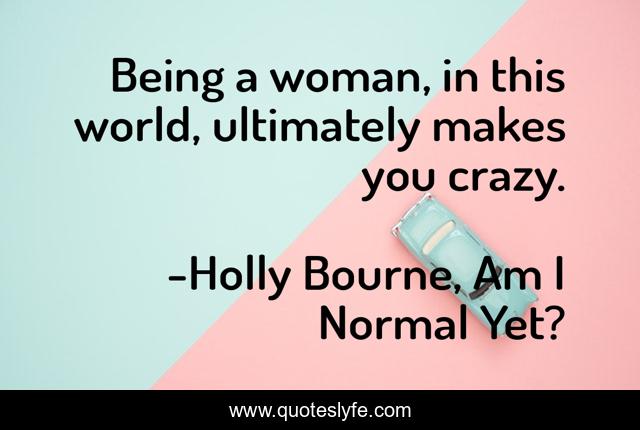 "Holly Bourne, Am I Normal Yet? Quotes." Quoteslyfe.com, 2025. Sat. 06 Dec. 2025. <https://www.quoteslyfe.com/quote/Being-a-woman-in-this-world-ultimately-101859>.