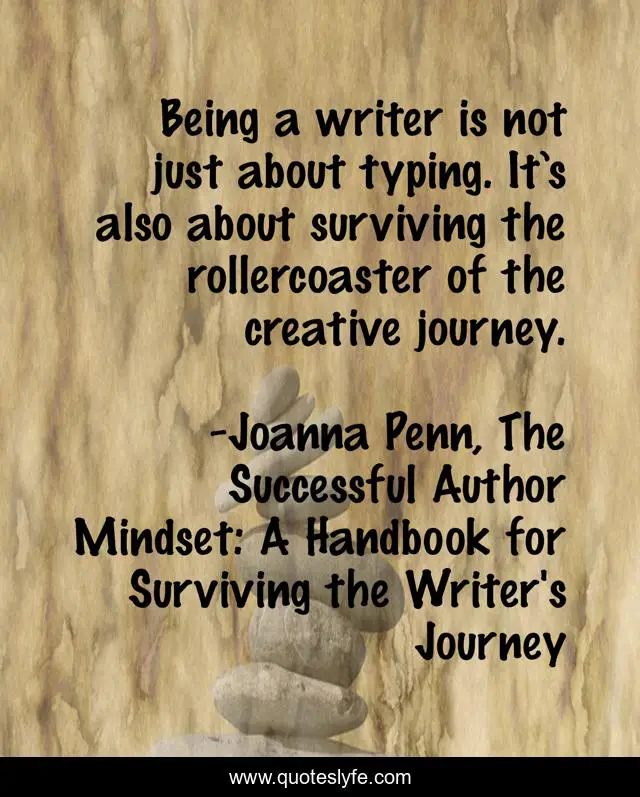 This page presents the quote "Being a writer is not just about typing. It’s also about surviving the rollercoaster of the creative journey.". Author of this quote is Joanna Penn, The Successful Author Mindset: A Handbook for Surviving the Writer's Journey. This quote is about writing, writing-life, writing-craft, writing-process, writing-advice,.